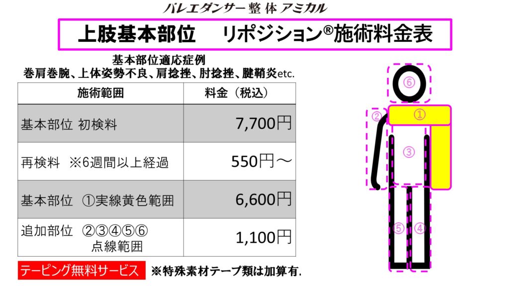 - 当院の施術は原則治療を目的から派生しています。そのためマッサージやリラクゼーションのような時間を基準にした費用算定は不自然と考え、施術時間は凡その目安時間となります。症状の重い軽いや施療(処置)内容により若干の時間が前後しますことをご了承下さい。